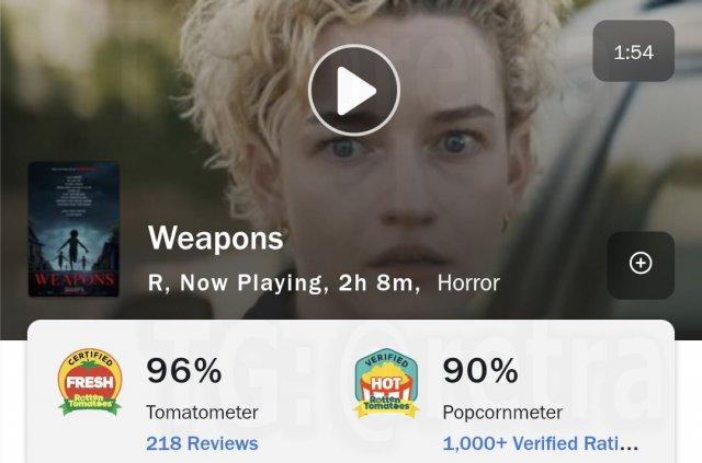 Ещё один кандидат на хоррор года — фильм «Орудия», который не получил практически ни одной негативной рецензии от критиков, а также набрал 90% зрительского рейтинга на Rotten Tomatoes.