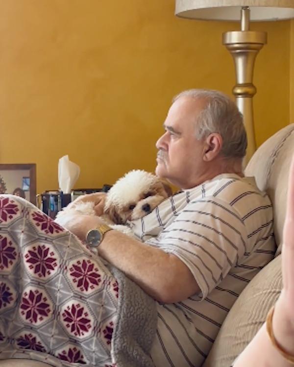 17. «Мой отец, который в детстве не разрешал нам завести собаку, каждый день присылает мне селфи, на которых он обнимается со своим новым лучшим другом — внуком»