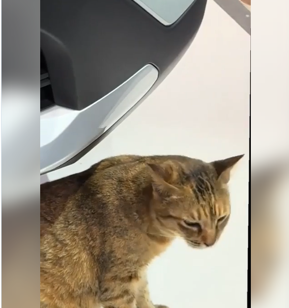 По словам очевидцев, светло-коричневая кошка, по-видимому, залезла под чехол выставочного автомобиля и уснула там. Ведущие, снимая чехол с автомобиля, обнаружили растерянное животное, лежавшее там, которое потом поднялось на ноги и начало удивлённо озираться по сторонам. Стоит ли говорить, что короткий ролик, снятый одним из посетителем, набрал более 6 000 000 просмотров за сутки.