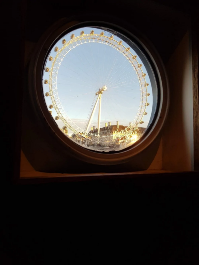 3. Я сфотографировал Лондонский глаз через иллюминатор судна на Темзе