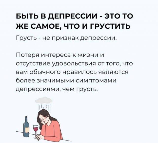 Многие из нас любят говорить: "У меня депрессия". Но мало кто понимает, что это такое на самом деле. Развеем несколько мифов о депрессии.