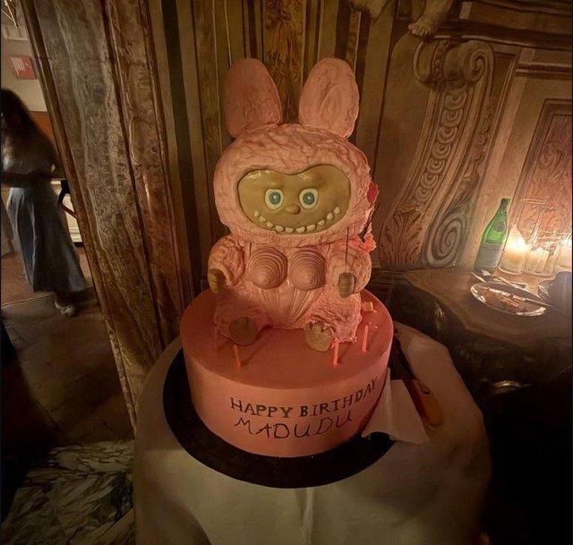 Бабушке уже 67, а она все еще прыгает и скачет по сцене как угорелая! Молодец, конечно. И торт у нее весьма модный для ее возраста.