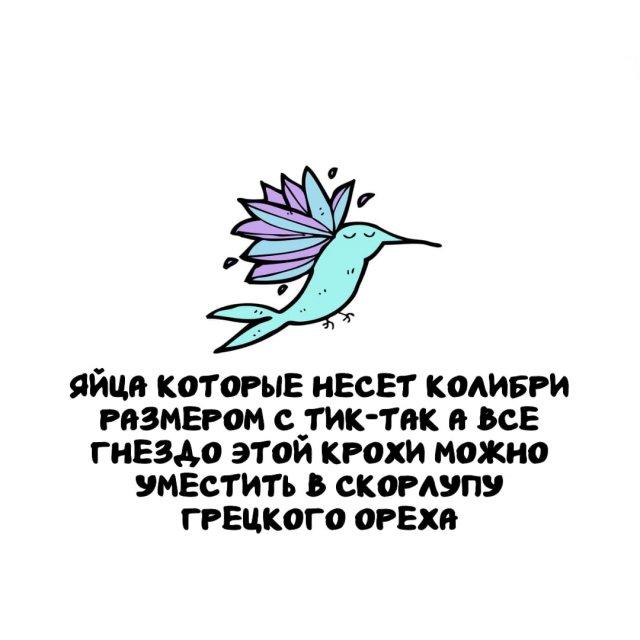 Чем на самом деле является "шум моря", который мы слышим в ракушке? Насколько маленькие яйца откладывают колибри? Как называется навязчивый страх уток? Это и многое другое узнайте в новой подборке интересных фактов на все случаи жизни.