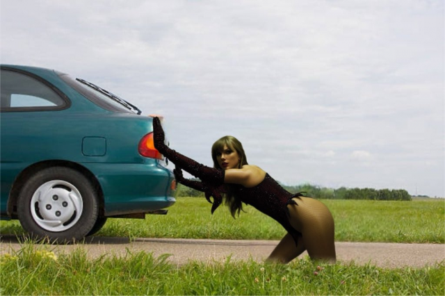 Тейлор Свифт толкает машину
