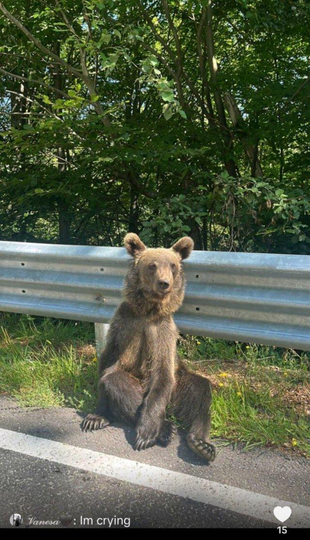 Уставший мишка из Румынии стал новой звездой TikTok. Чилловый хищник просто сидит у дороги и лениво смотрит на проезжающие мимо машины. Наше тотемное животное!