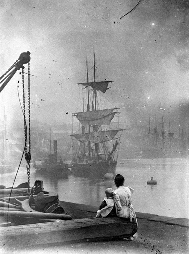 На северном берегу реки Темзы, Лондон, 1890 год.