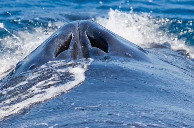 Дыхало кита, представляющее собой видоизменённые и смещённые на макушку носовые отверстия (ноздри)