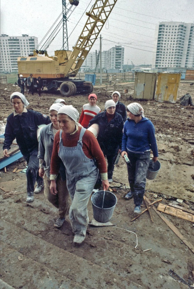 Женская бригада на стройке в 7-м микрорайоне Теплого Стана