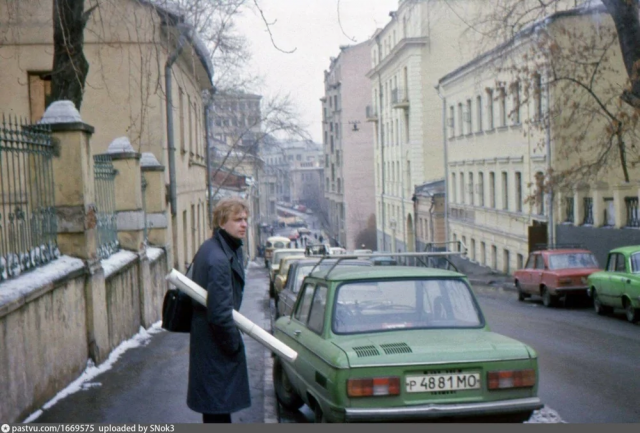 2-й Неглинный (ныне - Звонарский) переулок и студент МАРХИ на фоне зелёного "Запорожца"