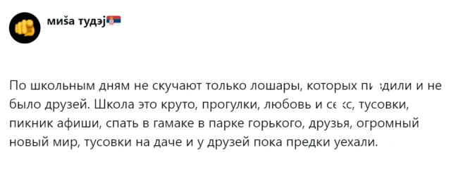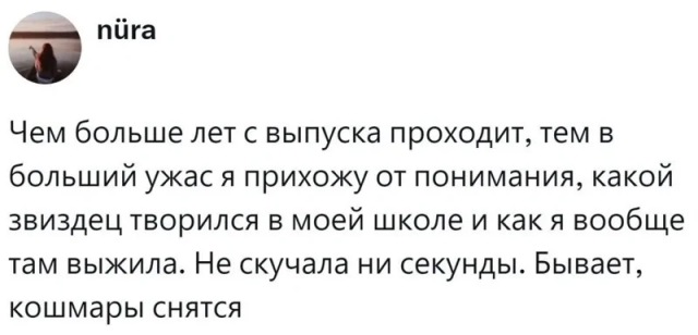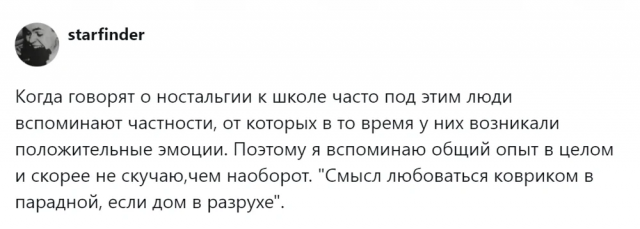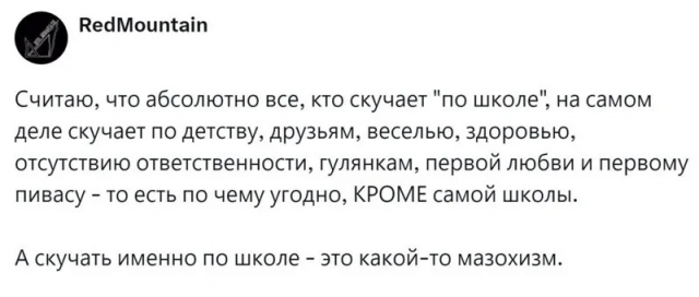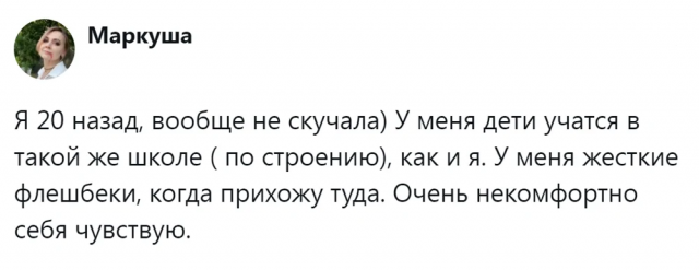 Недавно прошел День Знаний. По всей стране детишки вернулись за школьные парты, а малыши отправились в первый класс. А те, чьи школьные и студенческие годы остались позади, невольно придаются воспоминаниям. И в соцсетях решили обсудить эту ностальгическую тему о школьных деньках. Вопрос: "А стоит ли вообще скучать по школе?". Мнения людей разделились...