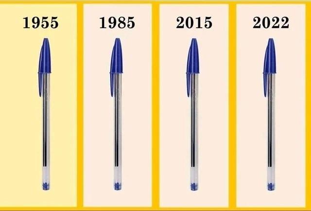 13. Шариковая ручка BIC Cristal (1955) — прозрачный корпус, синий колпачок, пишет вечно. Не изменилась. Прекрасный пример идиомы: «работает — не трогай».