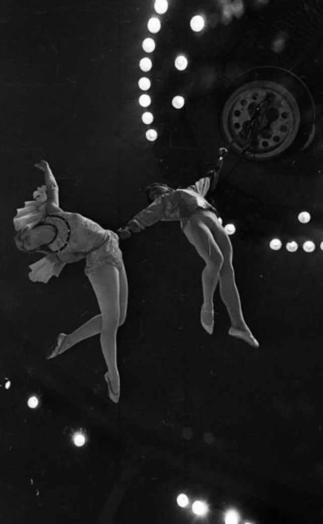 1959-1960 годы. Воздушная гимнастка Раиса Немчинская в новогоднем спектакле «Золотой орех»