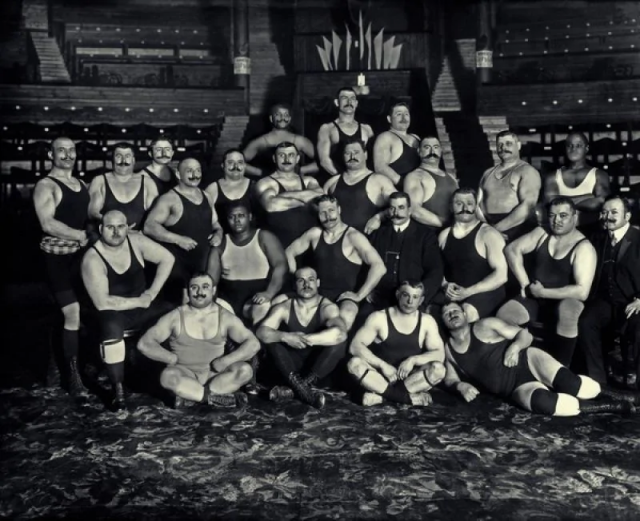 1912 год. Группа борцов - участников соревнований в цирке Чинизелли