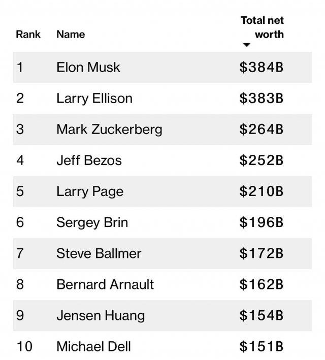 После заключения крупной сделки инвесторы принялись вкладываться в акции компании Oracle, где сооснователем является Ларри Эллисон. И в моменте его состояние увеличилось на 100 миллиардов долларов. По подсчетам Bloomberg, у Эллисона на счет было 393 млрд на балансе, у Маска - 385. Правда, длилось это недолго.