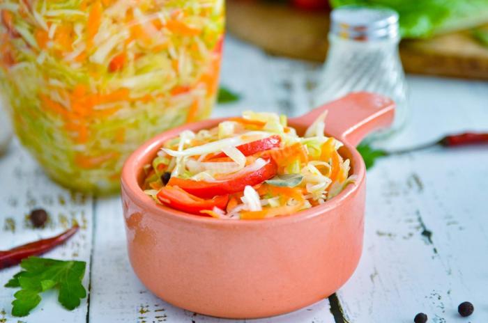 Для любителей пикантных вкусов подойдет маринованная капуста с добавлением сладкого перца и чеснока. Нарежьте овощи, посолите и заправьте уксусом и сахаром, оставьте настояться на пару часов. Такая капуста станет отличным дополнением к праздничному столу и разнообразит повседневное меню.