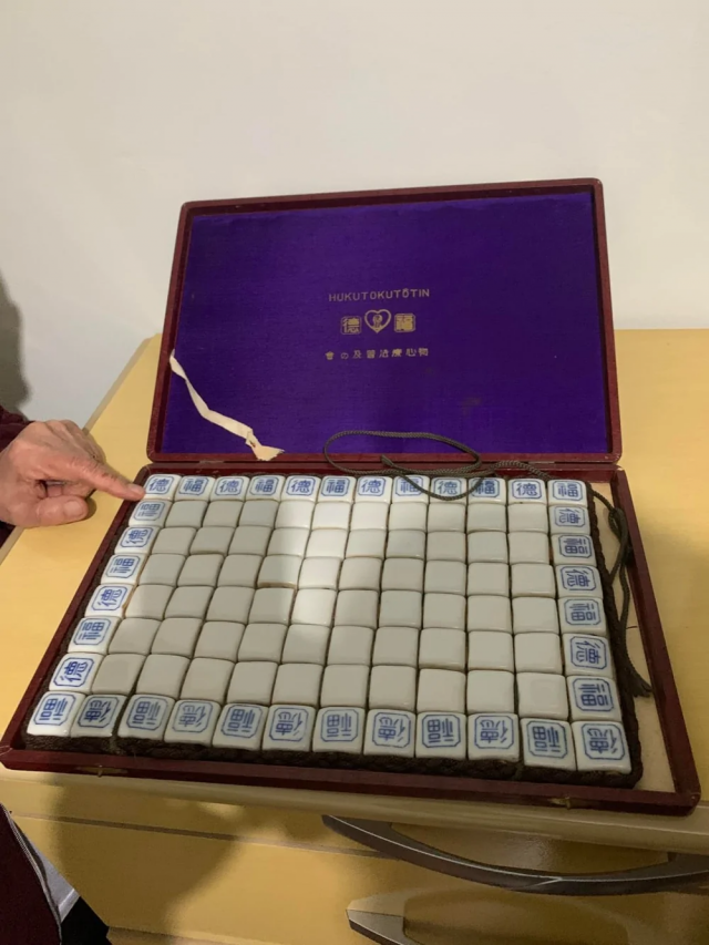 10. Керамические кубики в коробке, соединённые между собой в полотно, часть которых обозначена иероглифами