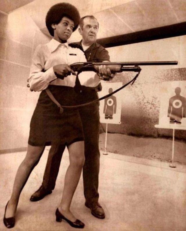 Сандра Браун — первая афроамериканка-полицейский, проходит обучение по обращению с оружием. 1970 год.