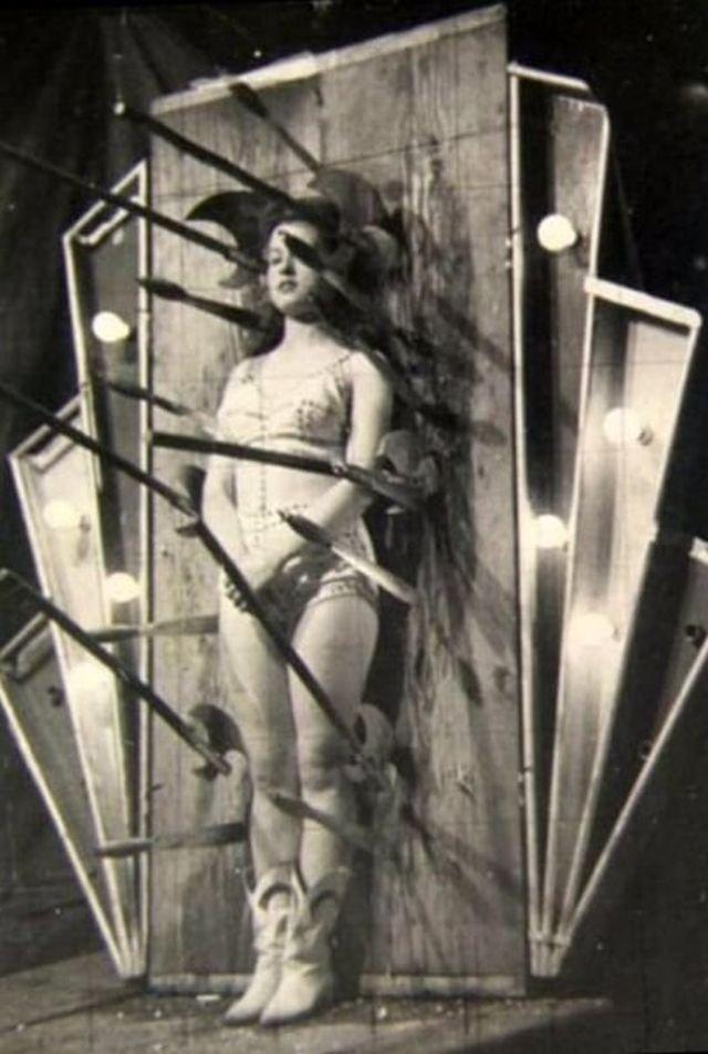 Помощница метателя ножей Рози Комер, 1930-е годы.