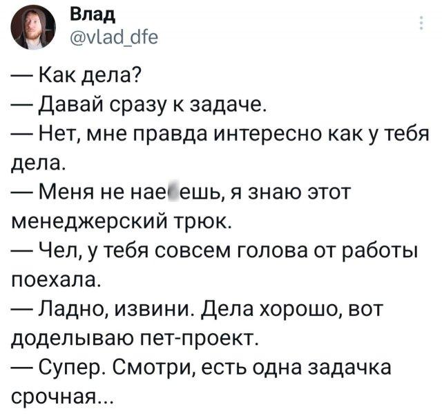 Твиты, твиты, твитушки. Этого добра мало никогда не бывает. Хорошо, что остряки с просторов соцсетей не устают радовать нас позитивным контентом каждый день. Давайте поглядим, что они приготовили нам сегодня.