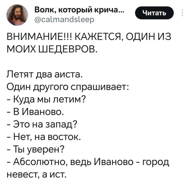 Эта подборка расскажет вам о реках, текущих по территории Якутии, приключениях Равшана и Джамшута, причинах, по которым сыроежки лучше не хранить в холодильнике. В общем, веселая ерунда и каламбурчики. То, что доктор прописал!