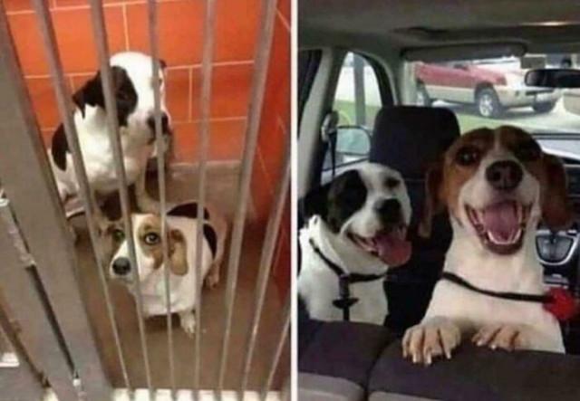 6. «Две фотографии с разницей в час... До и после того, как их забрали из приюта»