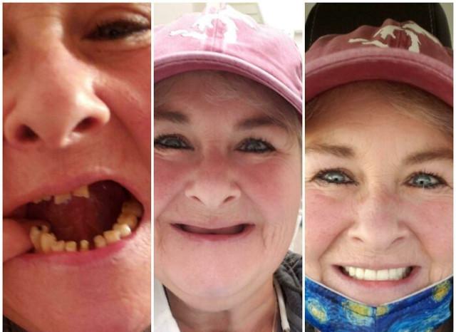 12. «Пациентка стоматолога до и после лечения с новым набором зубов»
