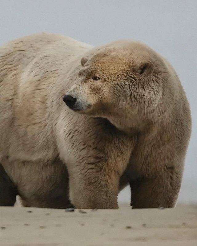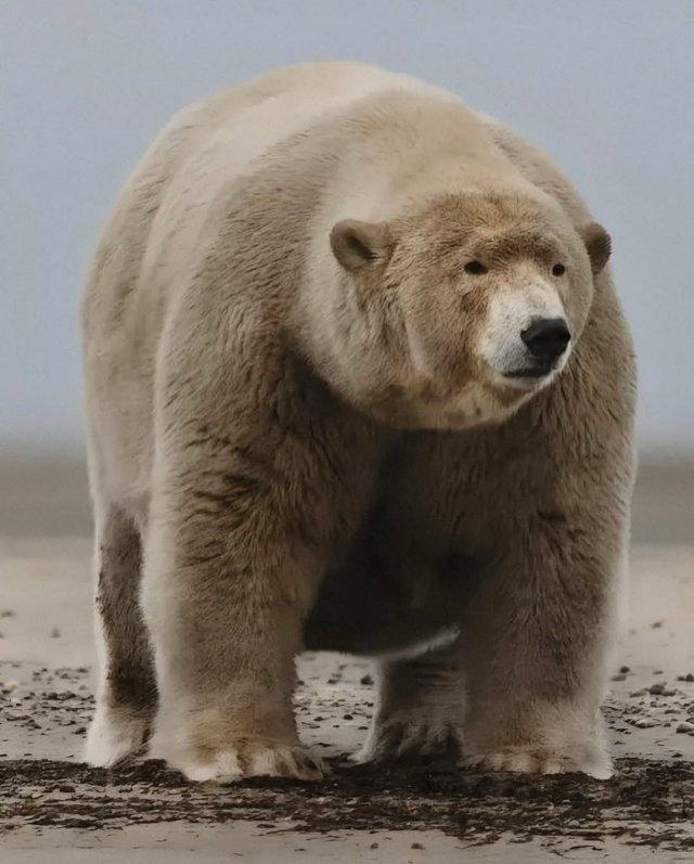 Толстяк Альберт самый упитанный белый медведь Аляски. Весом более 680 кг он стал местной легендой: на льдинах его сравнивают не с “царём Арктики”, а с “повелителем буфета”. Учёные объясняют его массу удачной охотой на тюленей и определили вес по фотоловушкам и анализу размеров тела.