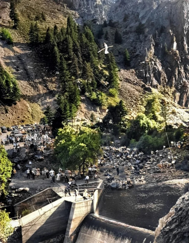 8. 82-летний канатоходец Айви Болдуин пересекает плотину. Колорадо, 1948 год.