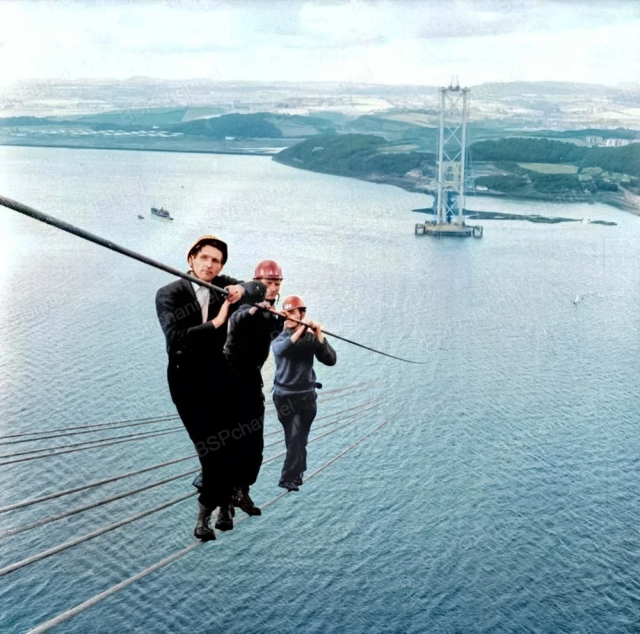 3. Рабочие на строительстве моста Форт-Роуд в Шотландии, 1961 год.