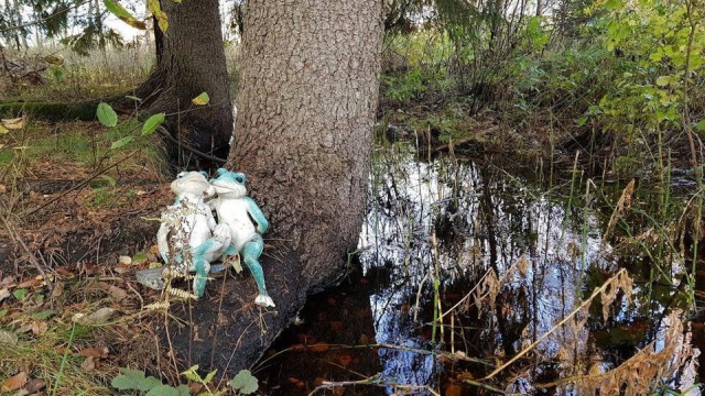 Кто-то уместил эту парочку у пруда прямо посреди леса