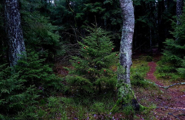 Кто-то решил нарядить ёлку во время прогулки в лесу