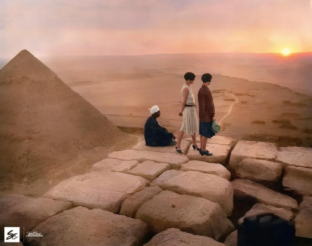 2. Туристы на вершине пирамиды Хеопса (1920-е годы). Фотография Джорджа Ринхарта