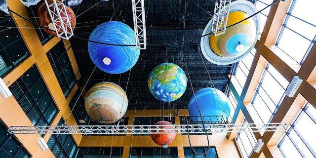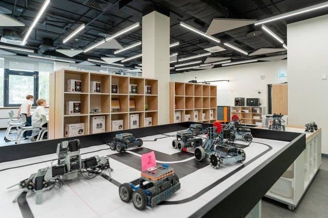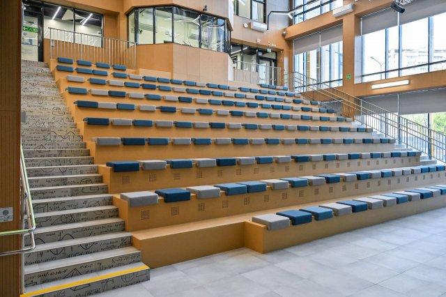 Новое здание городской школы в Багратионовском проезде в Москве, где есть лаборатории, спортплощадки, ИТ-полигон, медиатека, арт-объекты в виде солнечной системы, математические формулы на ступеньках и многое другое. Кажется, учиться становится все интереснее.