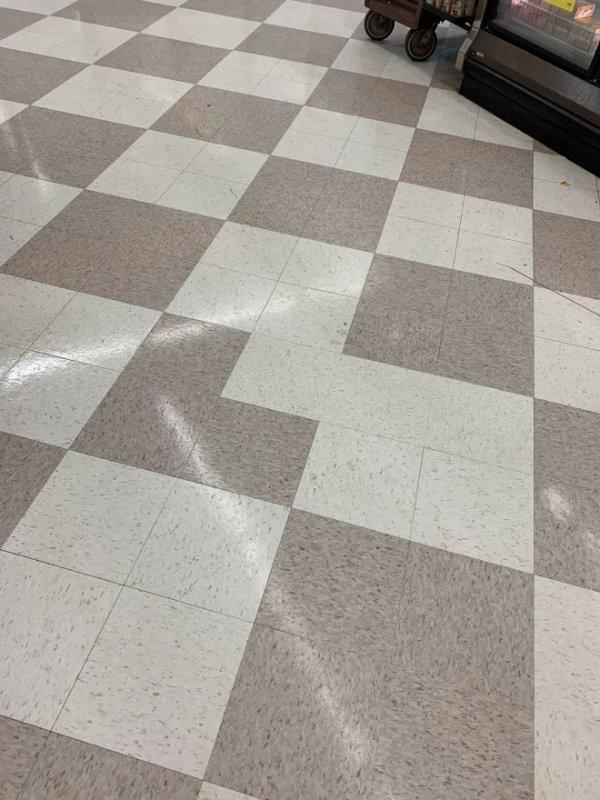 Добро пожаловать в визуальный кошмар для любителей симметрии и чётких линий. Эти фотографии — настоящий тест на выдержку: плитка, уложенная наспех, мимо разметки, наперекосяк и просто… почему? Напольная, настенная — никто не застрахован. Узор сбит, швы пляшут, а идеальный ритм так и не случился.