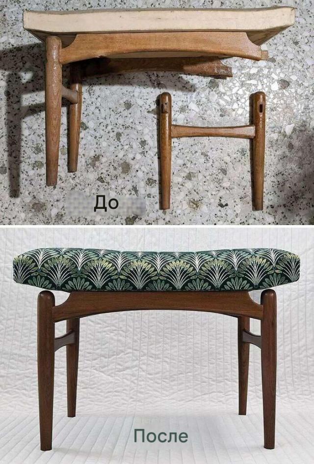 В этой коллекции фотографий собраны настоящие превращения, будь то резной комод, который снова блестит, словно только вышел из мастерской столяра XVIII века, кресло эпохи Возрождения, избавленное от облезлой обивки и гордо демонстрирующее свои изящные формы, или кровать времён Рюриков, ставшая уютным островком истории.