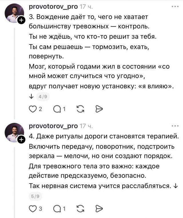 Вождение автомобиля лечит тревожность лучше таблеток — заявляют психологи. Дело в том, что за рулём просто нет времени накручивать себя и гонять мрачные мысли, пока мозг сосредоточен на дороге. Один из специалистов рассказал, как его друг годами пытался победить тревогу таблетками и медитациями, но спокойствие нашёл только тогда, когда сел за руль.