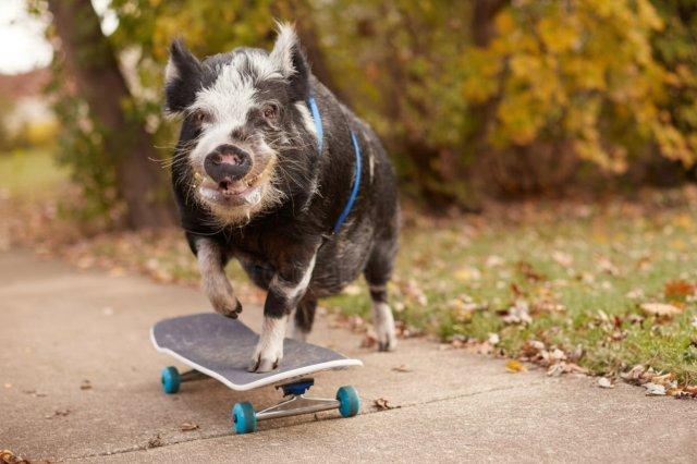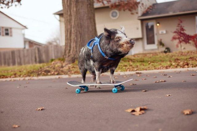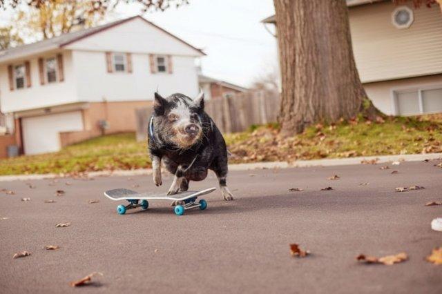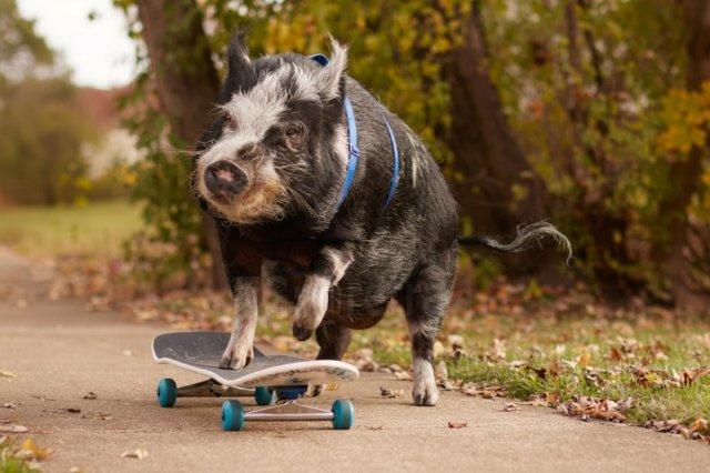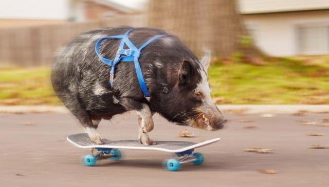 Свинья научилась кататься на скейте и попала в Книгу рекордов Гиннеса. Одарённый поросёнок по имени Норберт признан самым быстрым скейтбордистом среди свиней — ему удалось проехать на скейте 10 метров за 11,32 секунды. Это официальный рекорд.