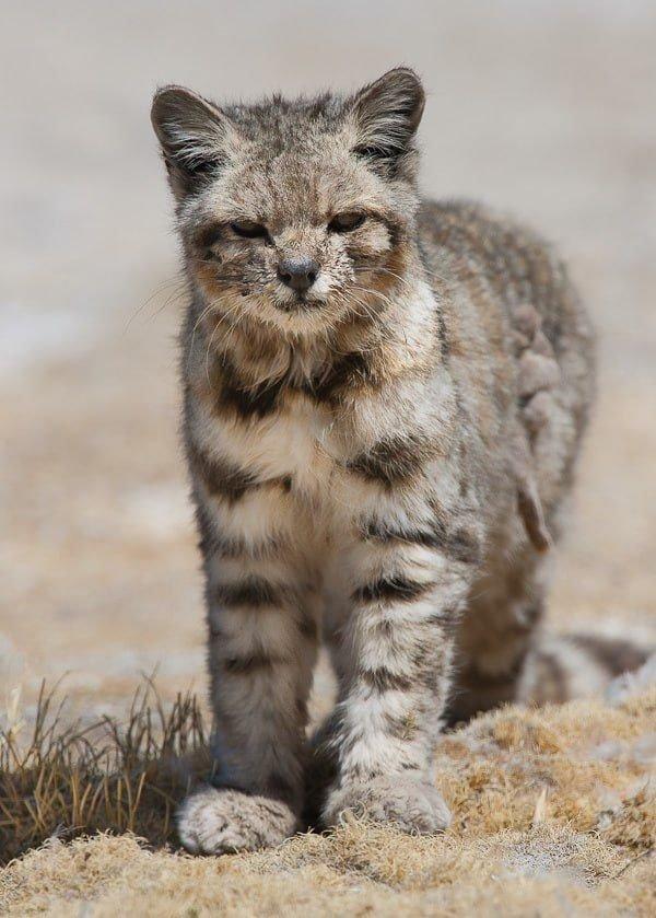 Знакомьтесь, андская кошка — это один из самых редких и малоизученных хищников на Земле. Ареал обитания кошки находится высоко в Андах, поэтому встретить её можно на высоте 3000-5000 метров. Известно лишь, что это маленькая кошка длиной около 60-70 см, у неё длинный пушистый хвост, густой серо-пепельный мех и тёмные кольца на хвосте.