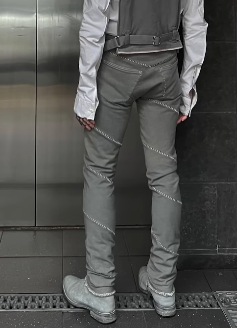 Конечно, не забудем про куртку из свиной кожи, где дизайнер впустил в вены краску.