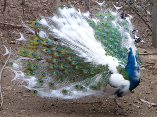 Пегий павлин — птица с сочетанием цветного и неокрашенного (белого) оперения, в дикой природе встречается редко, в основном является результатом скрещивания