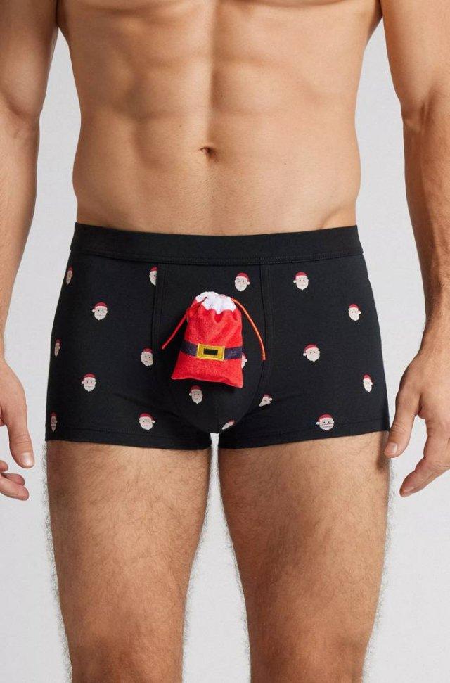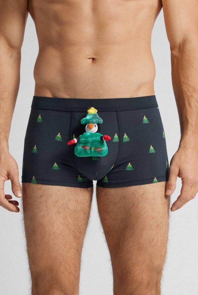 Новогодние трусы со светящимся пингвином, пряней и мешком с подарками выпустил итальянский бренд Intimissimi. У трусов есть три режима подсветки, чтобы точно сиять ярче любой ёлки. Идеальный подарок парню на Новый год.