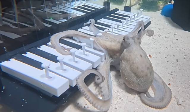 Сначала экспериментатор добился доверия осьминога, давая ему еду. Через неделю в аквариуме уже появилась первая клавиша. Методом поощрения осьминог научился играть три ноты. Дальше играть он отказывался.