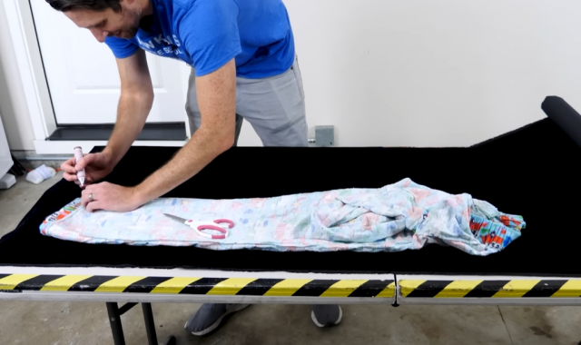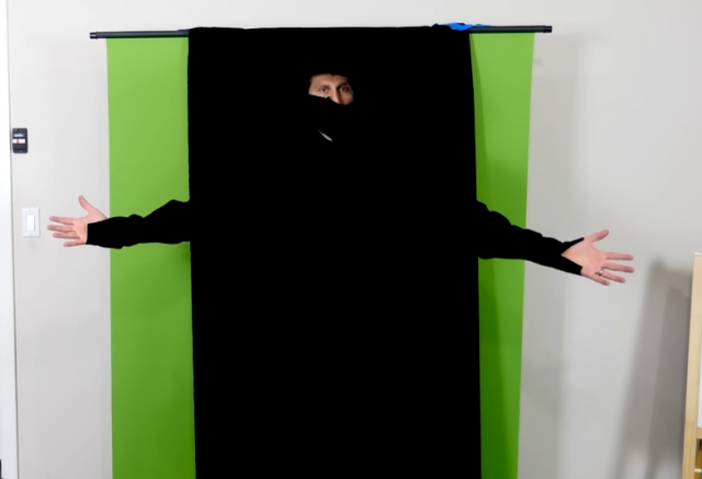 VL Flock — вельветовая ткань, сделанная по специальной технологии и способная отражать менее 0,5% света. Обведя свою повседневную одежду на изнаночной стороне этой «волшебной» ткани и сшив всё, блогер смог сделать целый костюм. Одежда получилась настолько тёмной, что она поглощала ультрафиолетовый свет и не отражала луч лазерной указки.