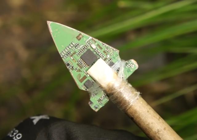 4. Разряженный телефон можно разобрать и сделать из него полезные инструменты. Например, в экране есть зеркальный слой, а из микросхемы можно сделать наконечник стрелы.