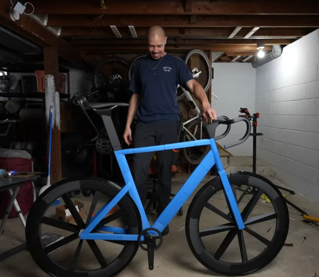 Американский блогер хотел купить велосипед Canyon Aeroad, однако не мог себе позволить из-за цены в 6500 долларов. Но ему в голову пришла интересная идея: «Почему бы не напечатать велосипед на 3D-принтере?» Спустя десятки часов моделирования и сотни часов печати у него получилось собрать велосипед. Но из-за отсутствия опыта ничего не получилось: переднее колесо не крутилось, по всей раме были трещины, велосипед сломался как только на него сели.