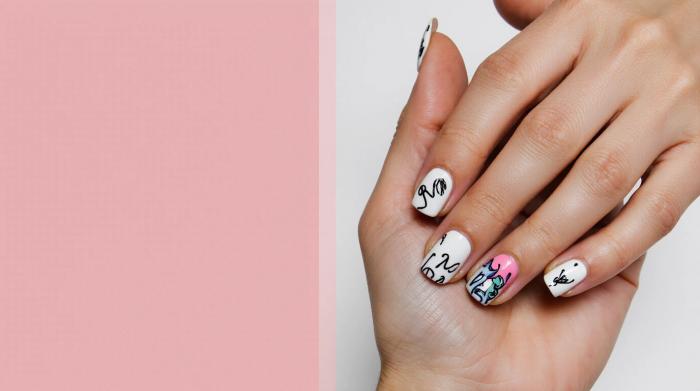 - Дизайнерский маникюр — с рисунками, покрытием гель-лаком и стразами