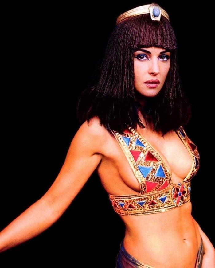 Моника Беллуччи на съемках фильма «Астерикс и Обеликс: Миссия Клеопатра» в 2000-е. Вспомним, какой была самая красивая актриса планеты.