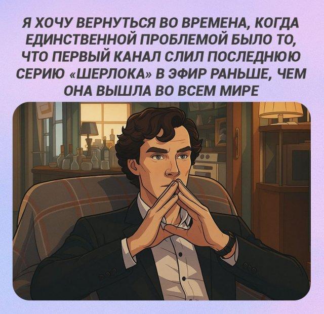 А ведь правда, давно мы не смотрели сериал "Шерлок". Который, кстати, выходил одновременно со всем миром! Были времена, да, а теперь лучшие шутки и мемы из Сети.