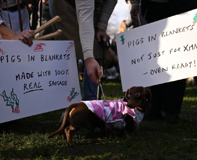 Гайд-парк в столице превратился в праздничное шествие, собрав сотни собак породы такса и их хозяев на уже восьмой по счету ежегодный зимний пробег.