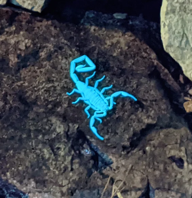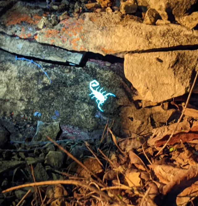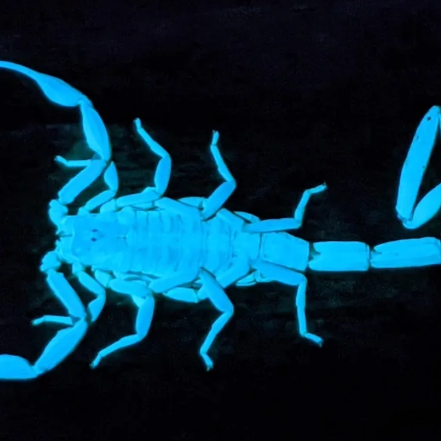 Кутикула скорпиона состоит из нескольких слоёв: внешне расположенный тонкий эпикутикула, средний слой - экзокутикула, и самый толстый внутренний слой - эндокутикула. Ответственность за флуоресценцию лежит на среднем слое, который вместе с эпикутикулой отслаивается во время линьки. В результате в периоды линьки и несколько дней после неё скорпионы не излучают свет. Также отмечается, что яркость их флуоресценции увеличивается с возрастом и укреплением экзоскелета.